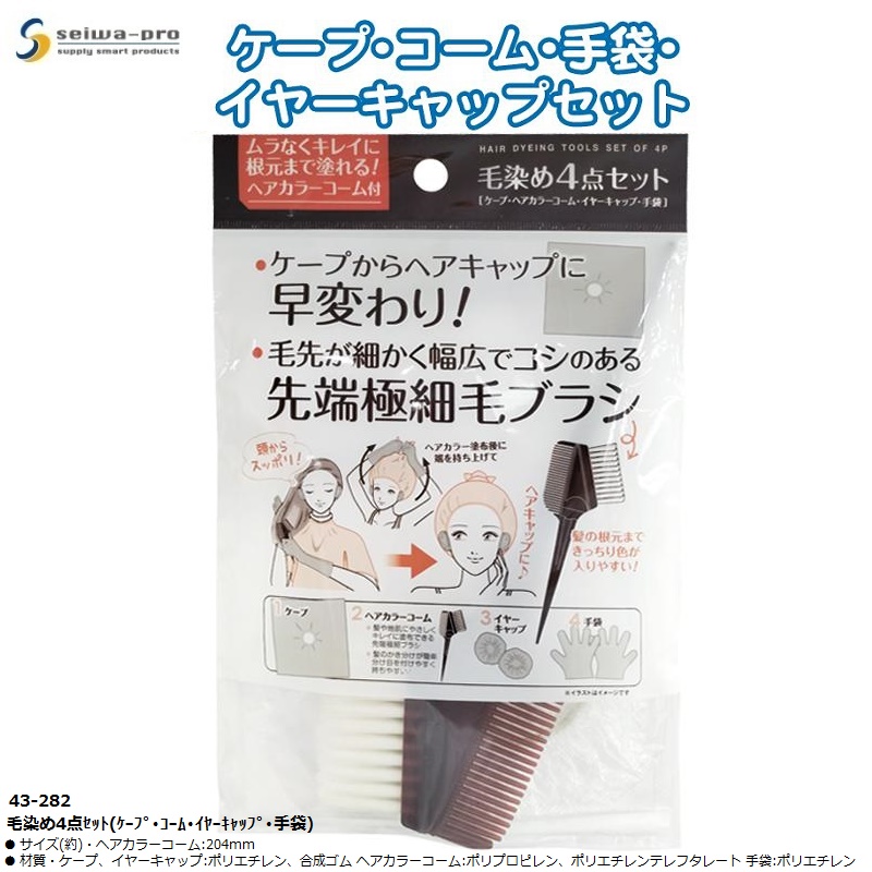 Giới thiệu Bộ 04 món nhuộm tóc tiện lợi Seiwa Pro (áo choàng/lược/mũ tai/găng tay) - Hàng nhập khẩu Nhật Bản