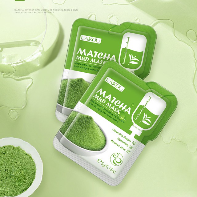 Mặt nạ bùn trà xanh Laikou làm sạch sâu kiểm soát dầu loại bỏ mụn đầu đen 5g * 12 chiếc
