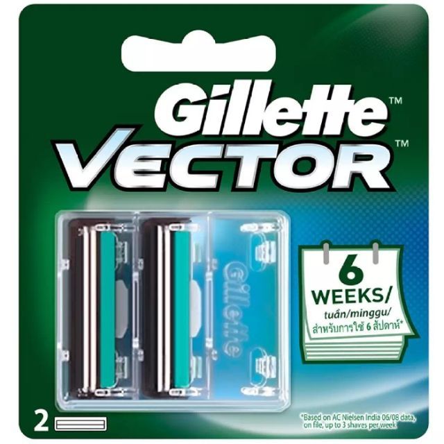 Lưỡi cạo Gillette Vector sở hữu thiết kế lưỡi kép: lưỡi thứ nhất kéo chân lông ra và cắt, lưỡi thứ hai tiếp theo sau cắt phần còn lại vào sát hơn, giúp cạo thật sạch, cho bạn một khuôn mặt sáng bóng rạng ngời.