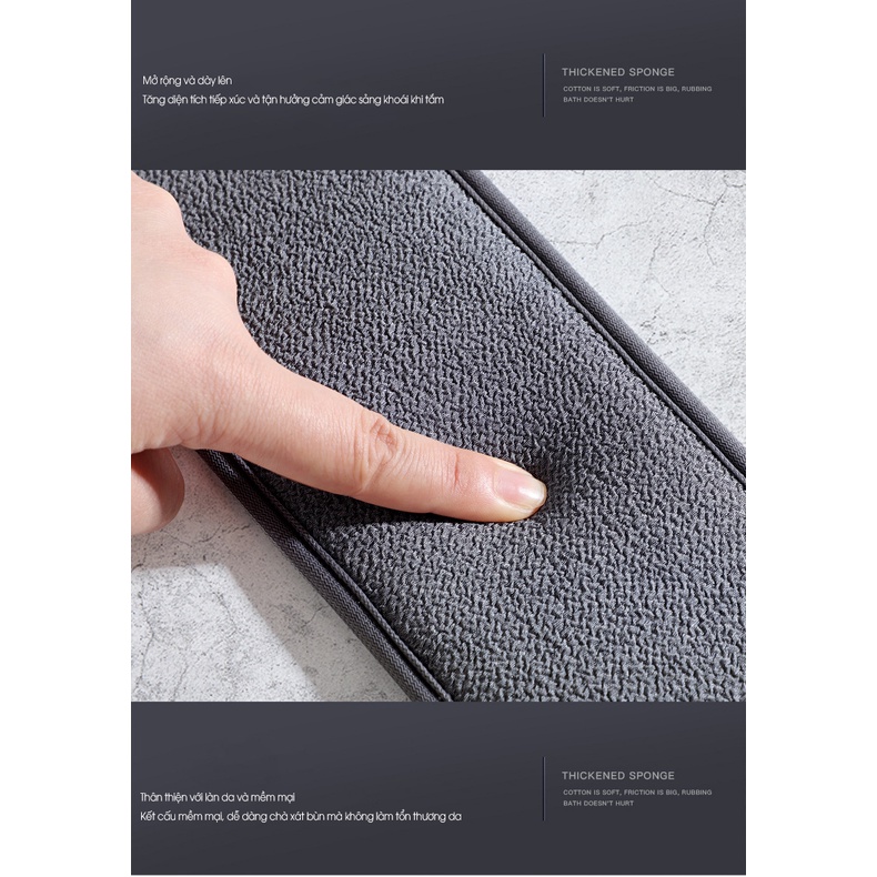 Không làm tổn thương da, không mùi, bao gồm máy chà lưng, găng tay tắm và bóng tắm.