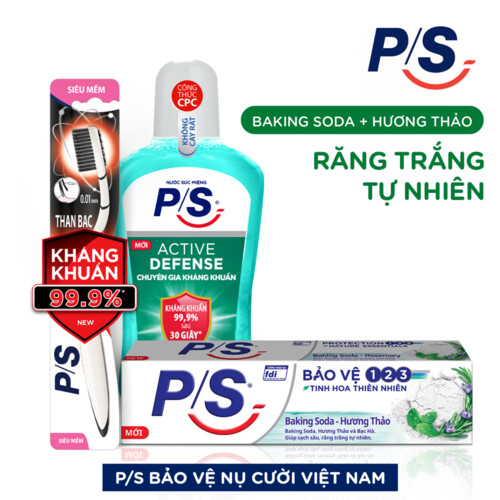 Giới thiệu Bộ 3 Hộp Kem Đánh Răng P/S Thiên Nhiên Baking Soda - Hương Thảo Trắng Răng Tự Nhiên 230G