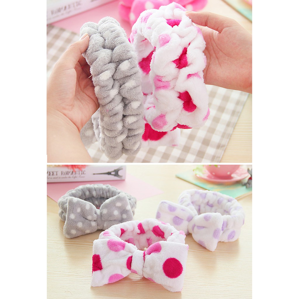 Băng đô rửa mặt, Băng đô cài tóc hình nơ bằng vải bông mềm
