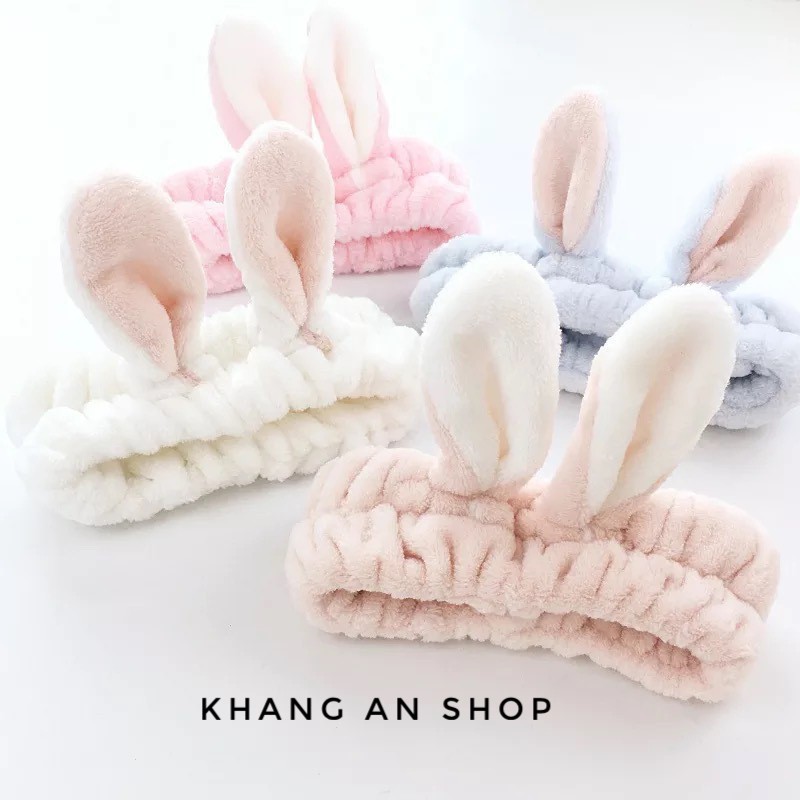 Giới thiệu Băng đô turban rửa mặt - trang điểm hình tai thỏ vải nhung mềm 3D