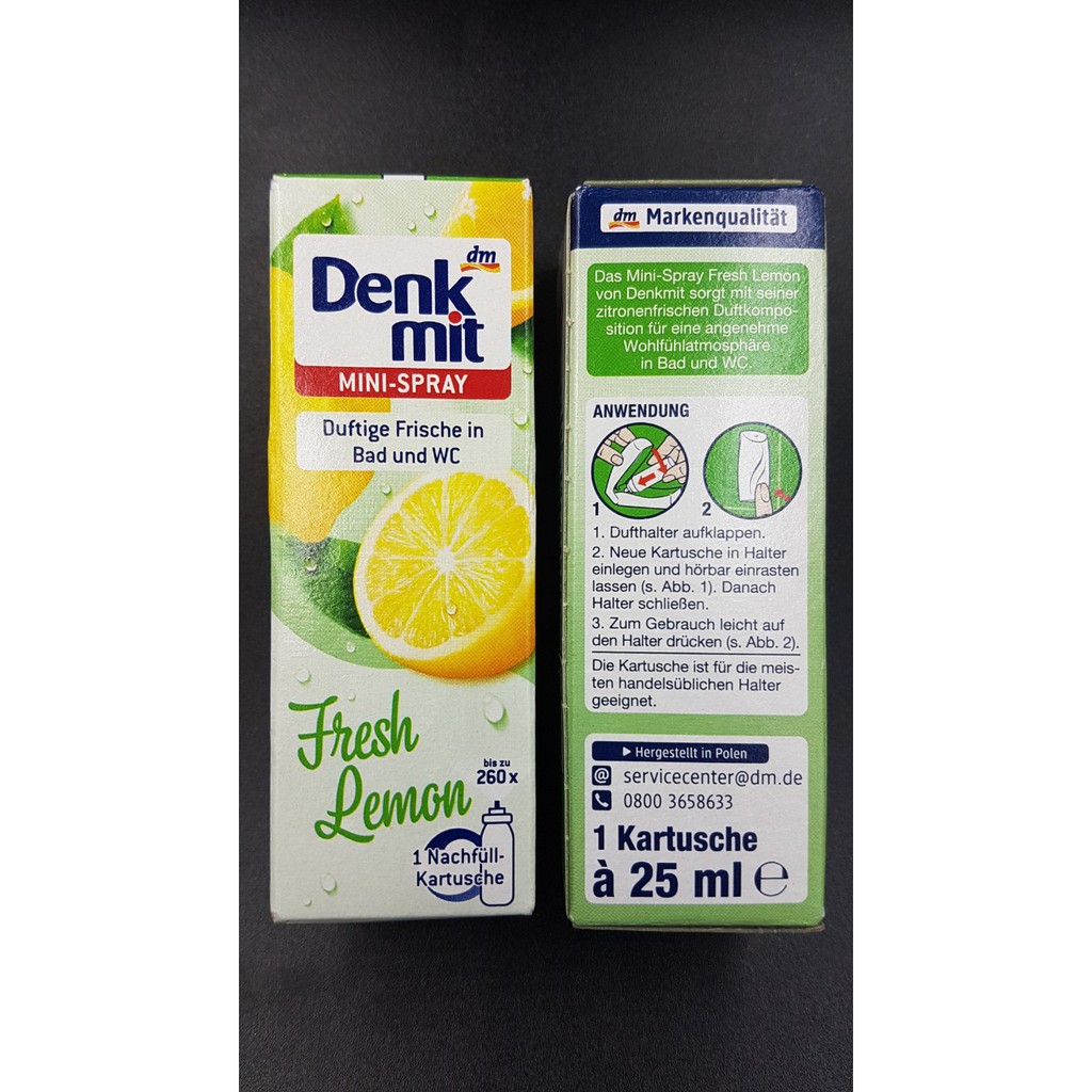 Nhà cửa & Đời sống > Chất khử mùi, làm thơm nhà > Tinh dầu thơm || Bình xịt (thay thế) làm mát không khí Denkmit Lufterfrischer Mini Spray 25ml