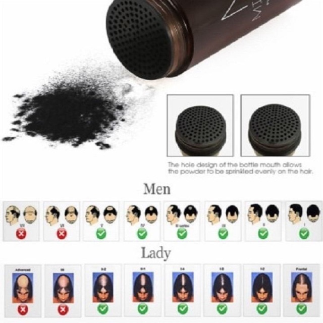 -Có thể xịt keo tạo kiểu bình thường. Bộ kit gồm 1 chai bột hair fiber minnow