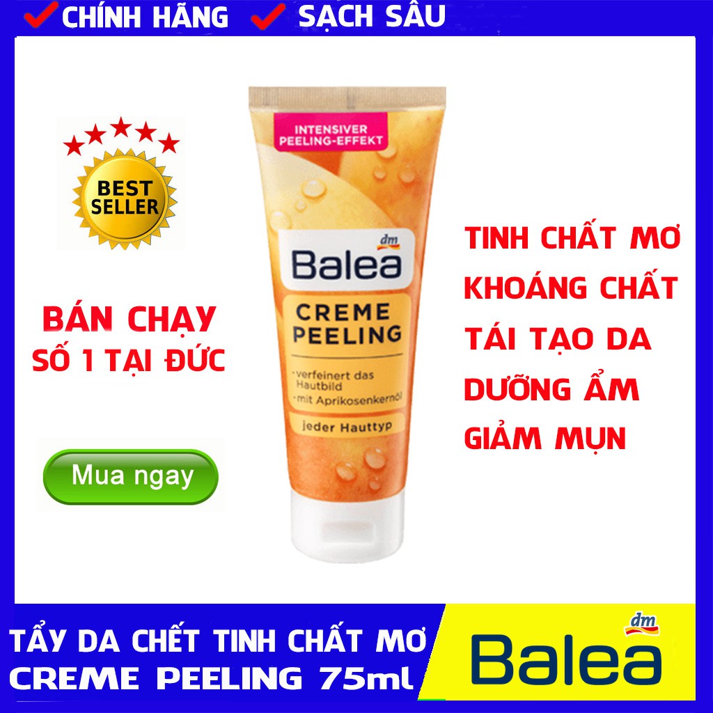 [CHÍNH HÃNG ĐỨC] Tẩy Da Chết Tinh Chất Quả Mơ Tươi Mát Balea Creme Peeling 75ml với các hạt khoáng chất đánh bay lớp sừng già cho làn da rạng rỡ. Ngăn ngừa mụn quay lại