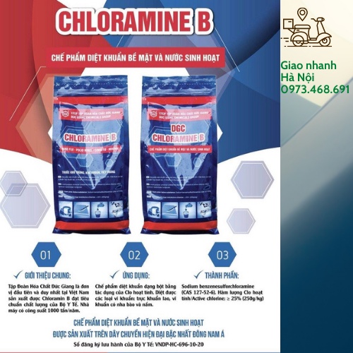 Giới thiệu Cloramin B DGC Việt Nam 25%, bột khử trùng nước, sát khuẩn đồ dùng, khử khuẩn bề mặt (Chloramine B) - Gói 1 Kg