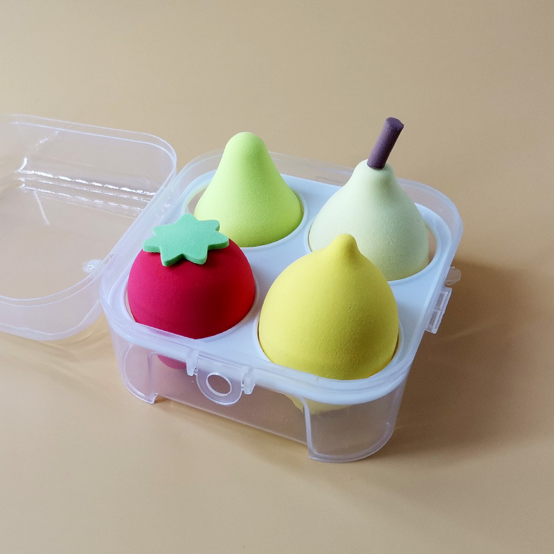 - Combo 4 món mút tán phấn cao cấp hình trái cây giọt nước, có độ đàn hồi cao , dẻo ,không bị biến dạng ,nhiều màu sắc cute xinh xắn đáng yêu