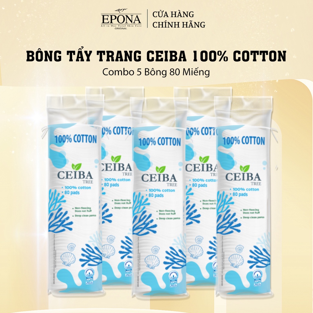 Giới thiệu Combo 5 Bông Tẩy Trang Ceiba 100% Cotton Siêu Tiết Kiệm Dung Dịch 80 Miếng x5
