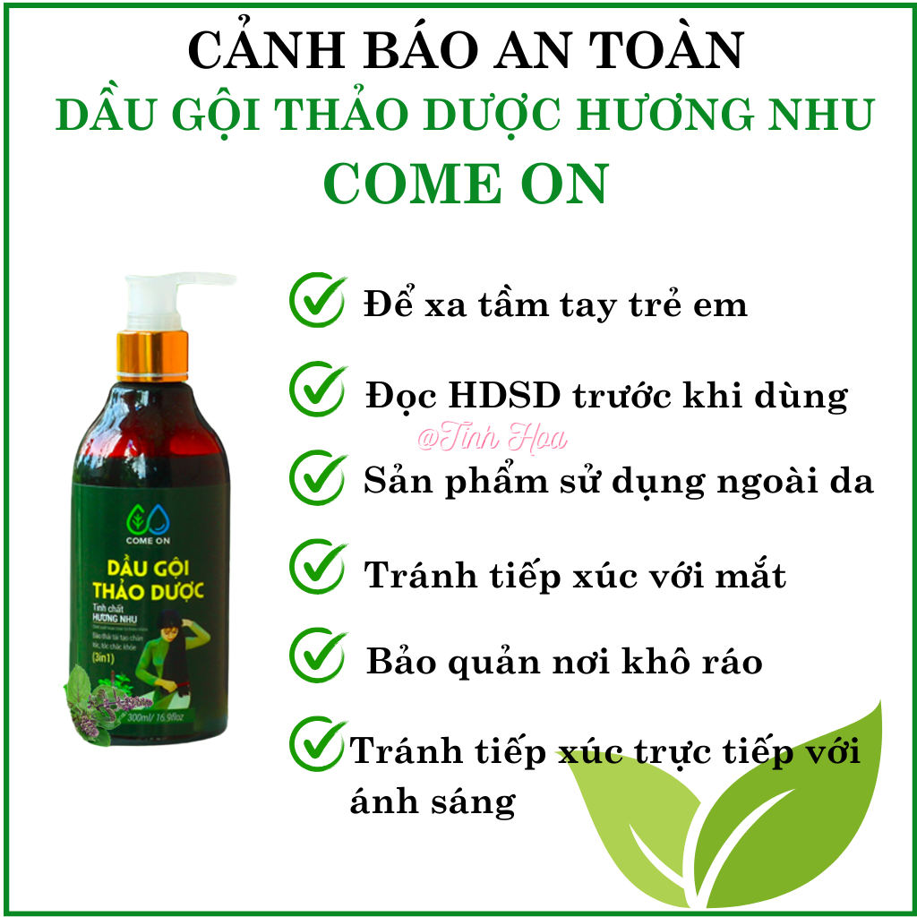Dầu gội thảo dược Come On là sản phẩm được chiết xuất 100% từ thành phần tự nhiên, được nấu theo phương pháp thủ công với dây chuyền chiết rót hiện đại.