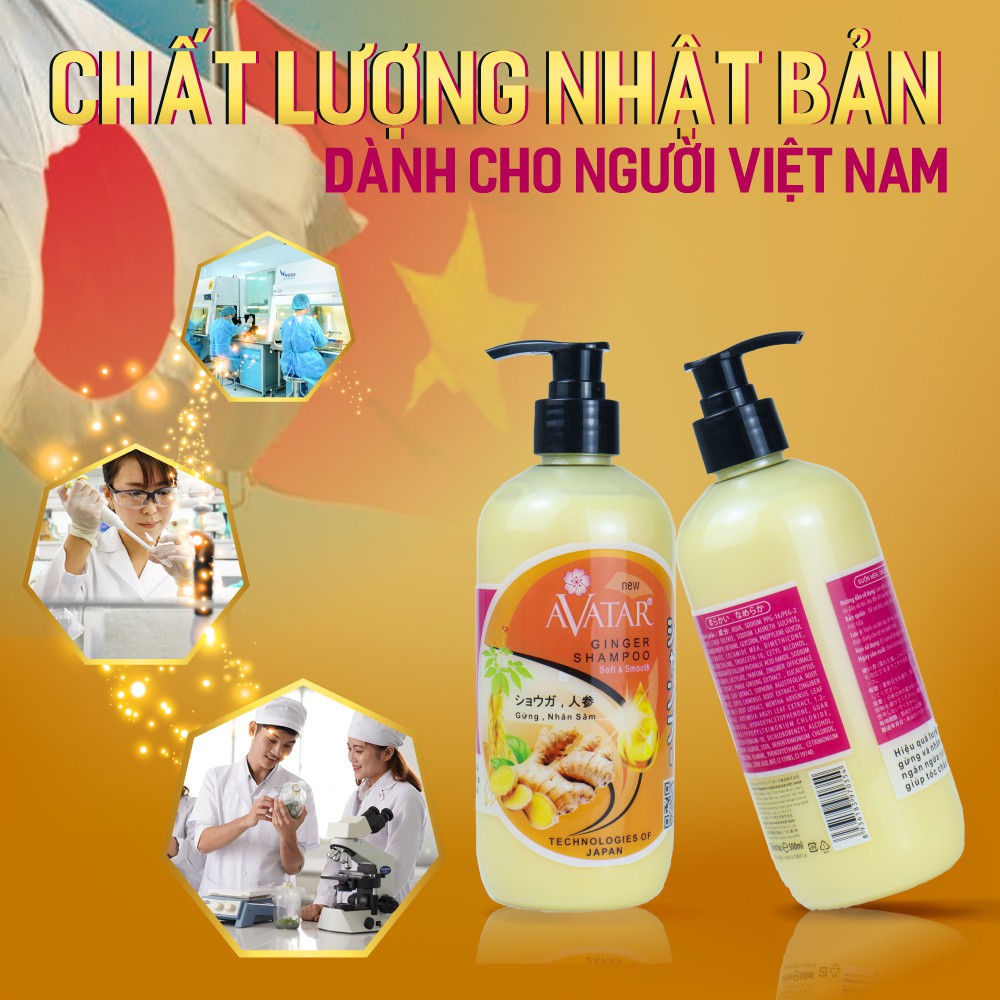 Dầu gội thảo mộc AVATAR Gừng & Nhân Sâm 500ml Ngăn tóc gãy rụng Kích thích mọc tóc nhanh.