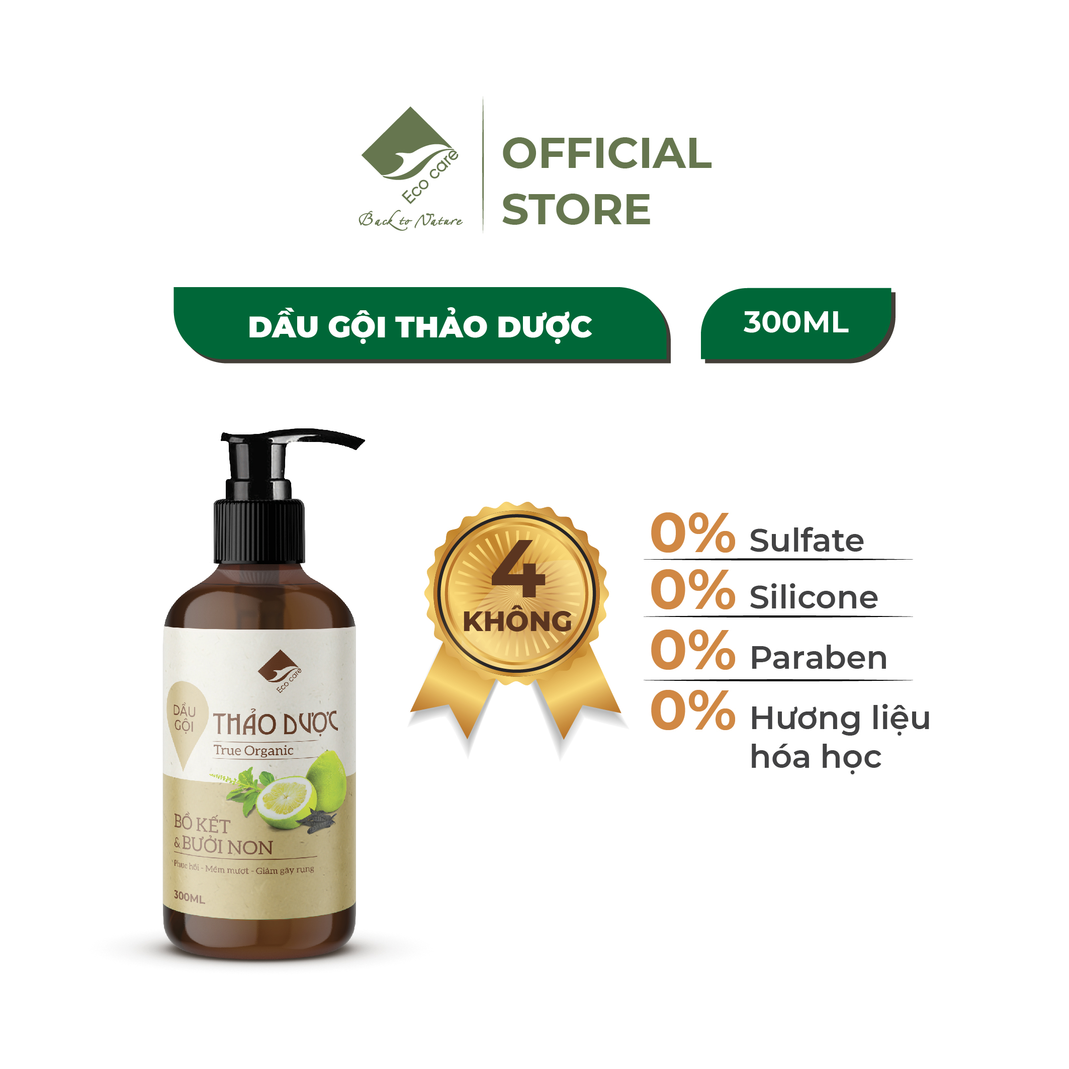 Sản phẩm Dầu gội xả Thảo dược Ecocare 300ml, dầu gội dầu xả Bồ kết hoa bưởi thiên nhiên làm sạch gàu, giảm rụng tóc, n.ấm ngứa da đầu được sản xuất bởi công ty CP Ecocare Việt Nam có thành phần là sự kết hợp của các thảo dược tự nhiên Bồ kết, Hoa bưởi, Mẫn Trầu, Hương Nhu, Dầu Dừa, Sangmodan,... mang đến cho bạn mái tóc mềm mượt, sạch gàu, giảm ngứa, gãy rụng tóc.