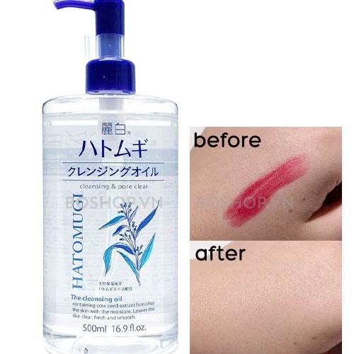 - Dầu tẩy trang Hatomugi The Cleansing Oil 500ml với chiết xuất từ ý dĩ vừa làm sạch da vừa