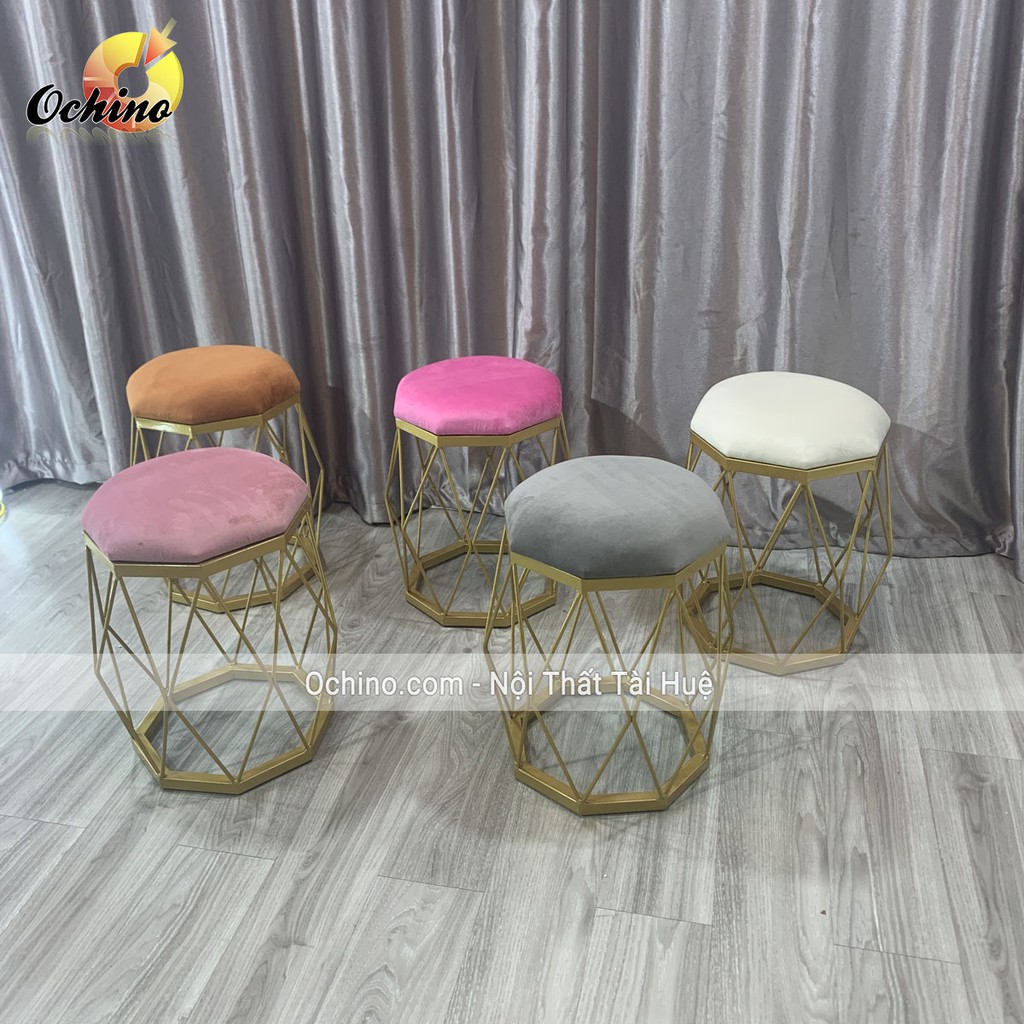 Giới thiệu Đôn Tròn Trang Điểm Chân Vàng Mẫu Kim Cương Sang Chảnh ( Đủ Màu Chọn)