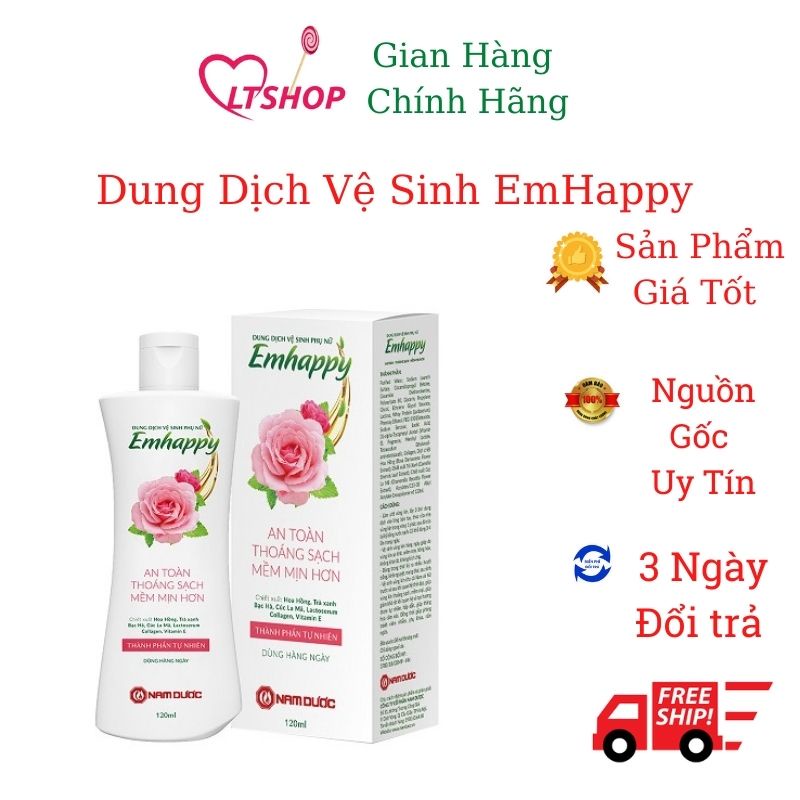 Giới thiệu Dung Dịch Vệ Sinh Phụ Nữ EMHAPPY lọ 120ml an toàn, thoáng sạch, mềm mịn