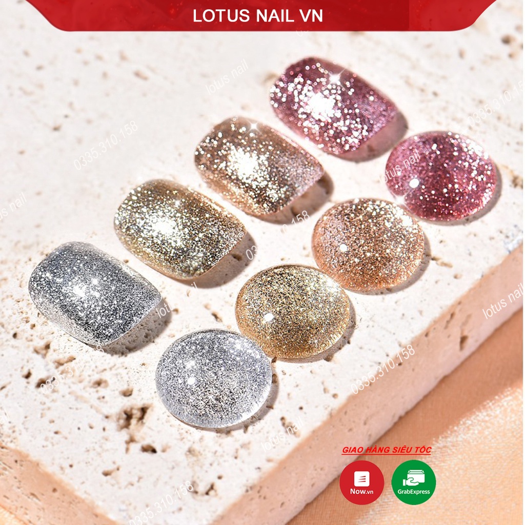 - Gel vẽ nhũ bạch kim Lotus là sự kết hợp giũa các hạt nhũ mịn siêu sáng với gel tạo nên hiệu ứng ánh sáng lấp lánh, ảo diệu