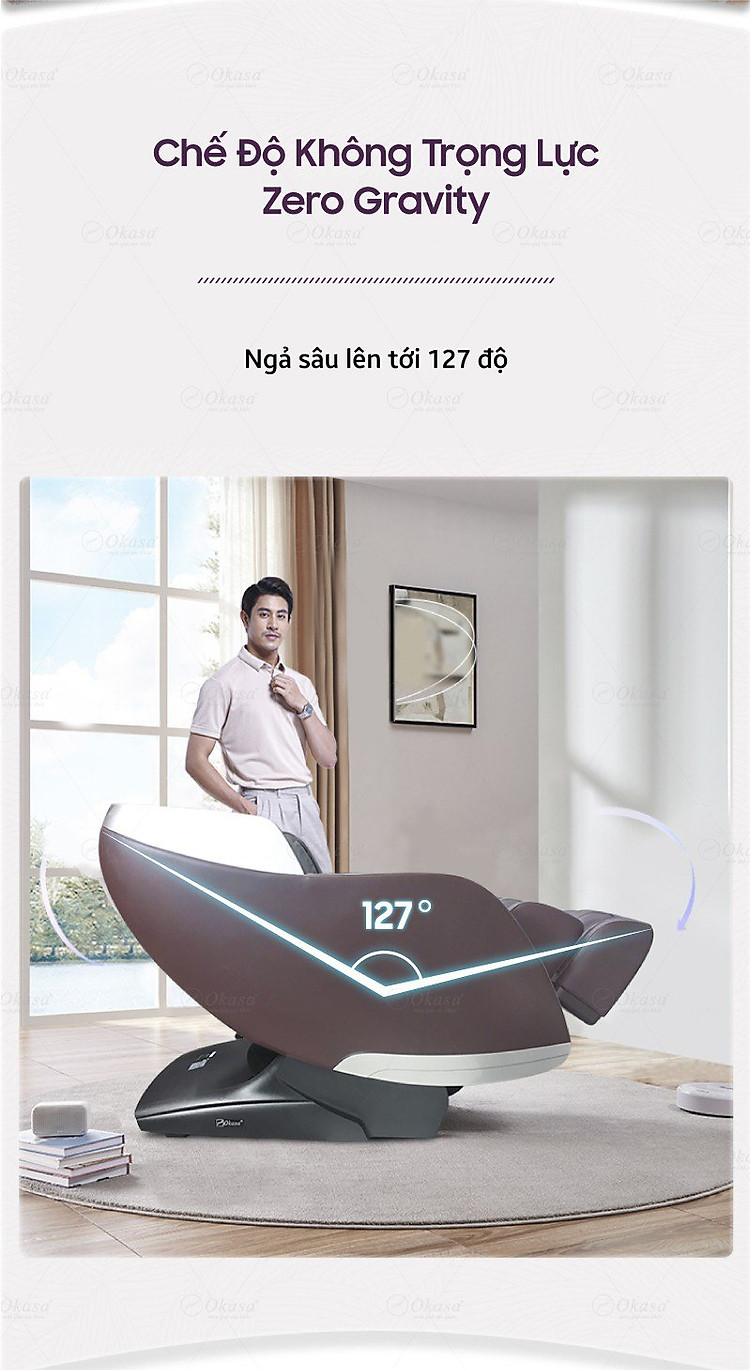 OS 568 Plus có khả năng ngả sâu 127 độ, giảm áp lực của hệ xương, đưa máu tuần hoàn lên não và các chi, giúp cơ thể hoàn toàn được thư giãn.