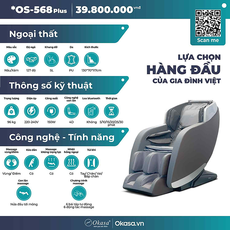 Một chiếc ghế Massage dành cho gia đình - Một món quà thiết thực dành tặng mẹ cha, OS 568 Plus là lựa chọn tốt nhất dành cho bạn. Với tài chính chưa đến 40 triệu đồng, đây là sự cải tiến vượt trội về công nghệ ghế Massage trong năm 2021.