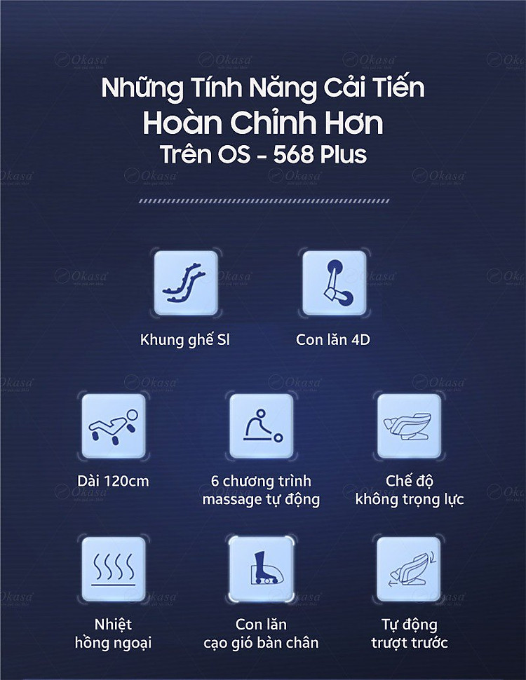 Vượt trội: OS 568 Plus sở hữu con lăn dành riêng cho vùng cổ, vai gáy, sức Massage sâu và dứt khoát, phù hợp với người trưởng thành, nhân viên văn phòng phải ngồi nhiều giờ liên tục, người ưa hoạt động thể thao.