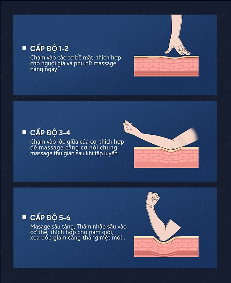 Một tính năng đặc biệt khác của Premium - 6 cấp độ Massage khiến nó trở nên phù hợp với mọi thể trạng.