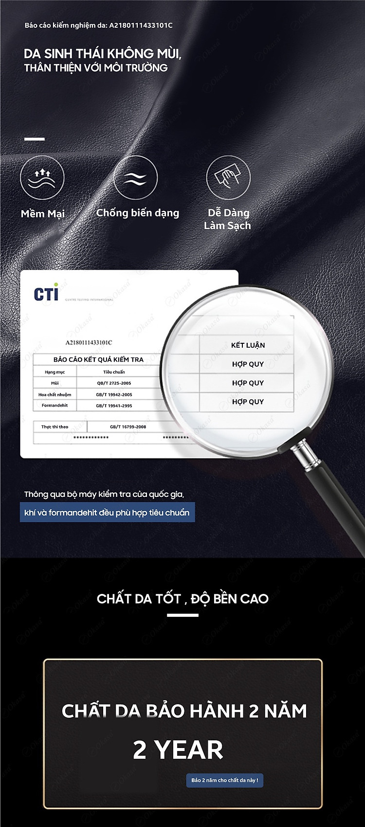 Được làm từ da sinh thái không mùi, không gây kích ứng và thân thiện với môi trường. Bạn sẽ luôn cảm nhận được sự mềm mát dễ chịu khi đặt mình lên Premium.