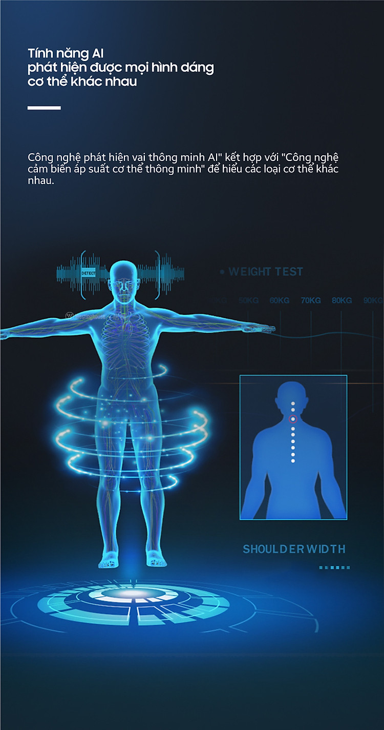 Bạn đã từng trải nghiệm những chiếc ghế Massage chỉ có tác dụng xoa bóp nhẹ nhàng ở bề mặt thậm chí hơi "hời hợt", chưa "tới"? Vậy thì đây chính là điều làm nên khác biệt của Premium, công nghệ AI cảm biến giúp phát hiện chính xác các huyệt đạo quan trọng và ẩn sâu nhất trong cơ thể, đưa con lăn tác động trực tiếp tới điểm đau, giải quyết triệt để đau mỏi.