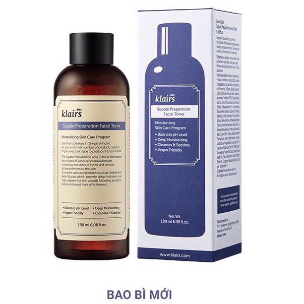 - Klairs Supple Preparation Facial Toner là toner nhận được rất nhiều review tốt, có chiết xuất từ thực vật, giúp cân bằng độ pH, tăng cường hiệu quả chăm sóc da. Giúp "hồi sức" và "bừng tỉnh" làn da mềm mại, ẩm mịn, sáng ngời.