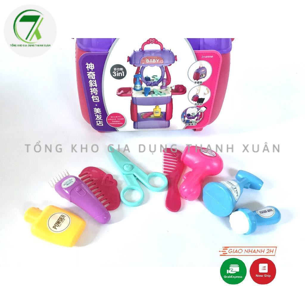 - Bộ đồ chơi cho bé gồm nhiều dụng cụ: tông đơ, máy sấy, gương, lược, bình xịt.... giúp các bé vui chơi cùng bạn bè và gia đình một cách an toàn nhất.