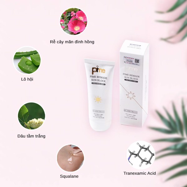 Ngoài tác dụng chống nắng, kem chống nắng Pime với chỉ số chống nắng vượt trội, nổi bật hơn những dòng sản phẩm khác bởi khả năng dưỡng da của nó. Với chiết xuất từ các thành phần thiên nhiên như chiết xuất rễ cây mãn đình hồng, lô hội, dâu tằm trắng,… không trôi khi gặp nước, phù hợp và an toàn với mọi loại da.
