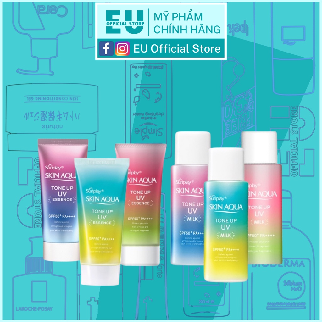 - Sunplay Skin Aqua Tone Up UV Essence: Dành cho mọi loại da, đặc biệt là da sáng, nhạy cảm, mẩn đỏ.