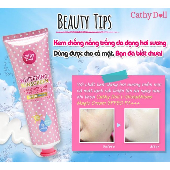 Giới thiệu KEM DƯỠNG TRẮNG, CHỐNG NẮNG CATHY DOLL L-GLUTATHIONE MAGIC CREAM