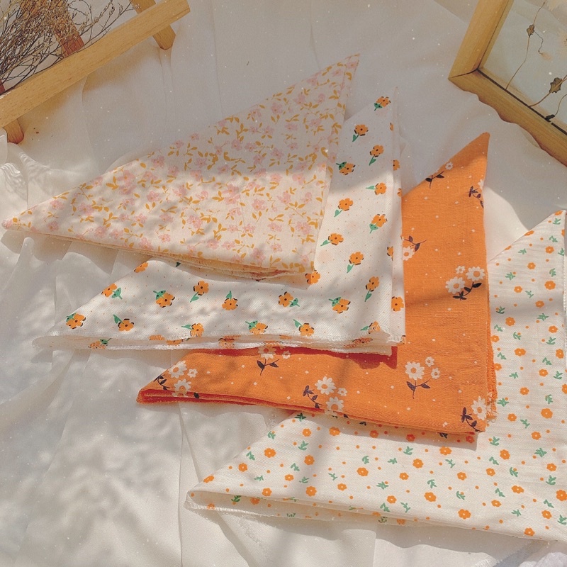 Giới thiệu KHĂN VẢI BANDANA TURBAN VUÔNG CHO NỮ TIEMMAYKEOKEO, CHẤT LIỆU COTTON MỀM MẠI HOẠ TIẾT SIÊU XINH,TONE CAM VÀNG KT 50X50CM