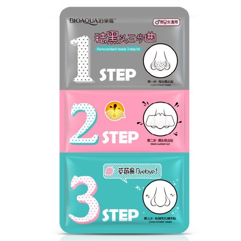 Giới thiệu Lột mụn đầu đen - Miếng lột mụn mũi 3 bước BIOAQUA nội địa