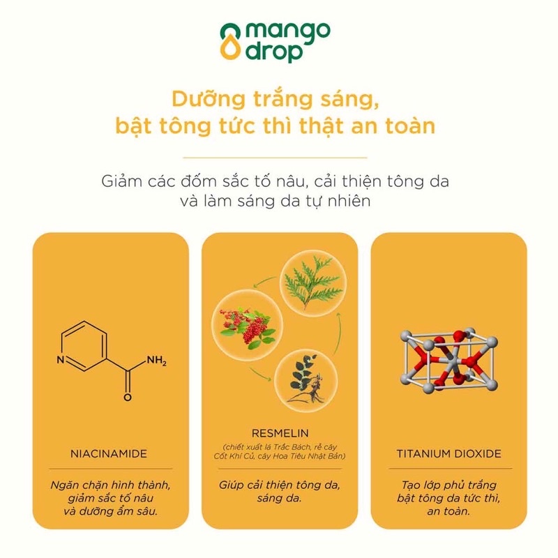 MANGO DROP được xem là bước tiến đột phá của dòng kem tắm dưỡng trắng khi sử dụng các thành phần tự nhiên, cùng các loại trái cây tươi mát mang đến hiệu quả cao trong việc nâng tone, dưỡng trắng da tức thì mà không hề gây ra bất kỳ các dụng phụ nào trên da.