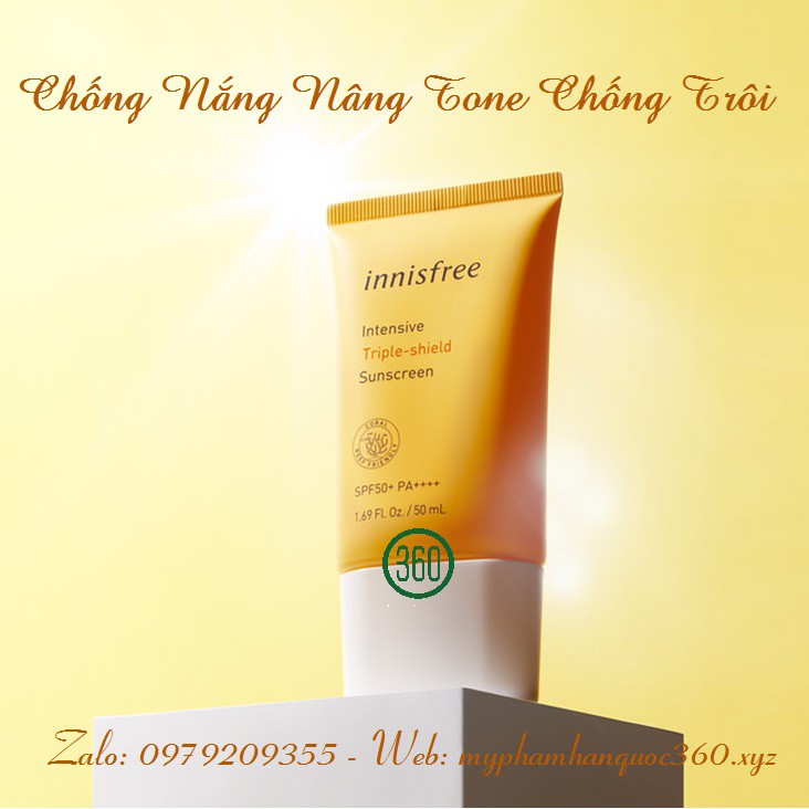 Giới thiệu [HSD: 2024] Kem Chống Nắng Nâng Tone Chống Trôi Innisfree Intensive Triple Shield Sunscreen SPF50+ PA++++ 50ml