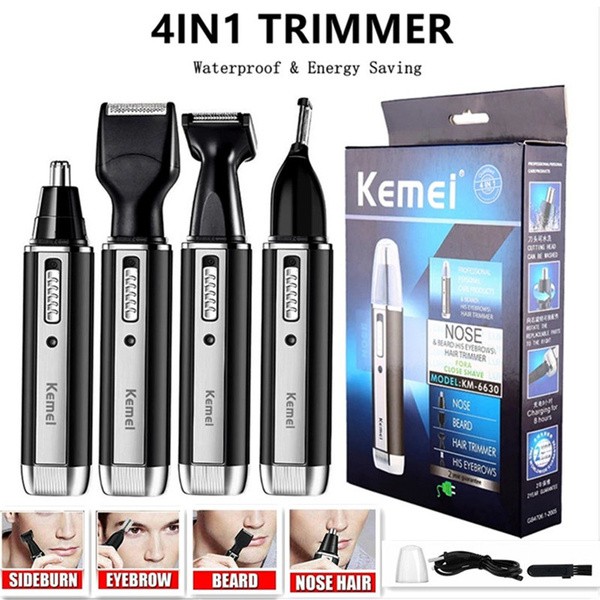 Máy Cạo Râu Điện Đa Năng Kemei 6630: 4 đầu có thể thay thế có thể được sử dụng làm máy tỉa lông mũi, máy tỉa râu, máy tỉa lông tai, máy tỉa tóc mai và máy tỉa lông mày