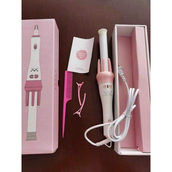 MÁY LÀM TÓC UỐN XOĂN XOAY TỰ ĐỘNG 360 với tông hồng phấn với trắng quá dễ thương, hãng thiết kế chu đáo từ bao bì, phụ kiện tặng kèm, đến đường nét thiết kế dáng máy nét nuột vô cùng!😘😘