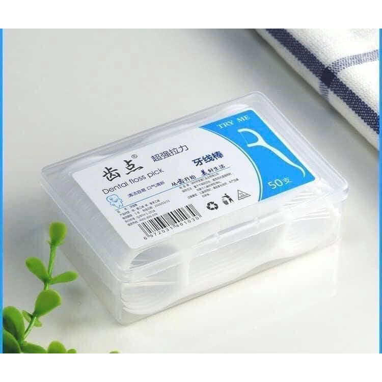 Chỉ nha khoa hộp 50 tăm chỉ nha khoa sợi chỉ mảnh tăm nha khoa cao cấp đảm bảo an toàn răng miệng cho gia đình APVN17380