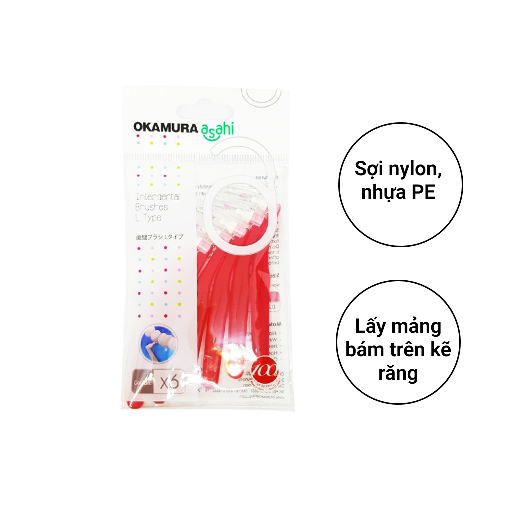 Giới thiệu Set 6 Bàn chải kẽ răng Okamura Asahi chuyên cho răng niềng, chỉnh nha, tăm kẽ chữ L cho răng hàm, răng cửa