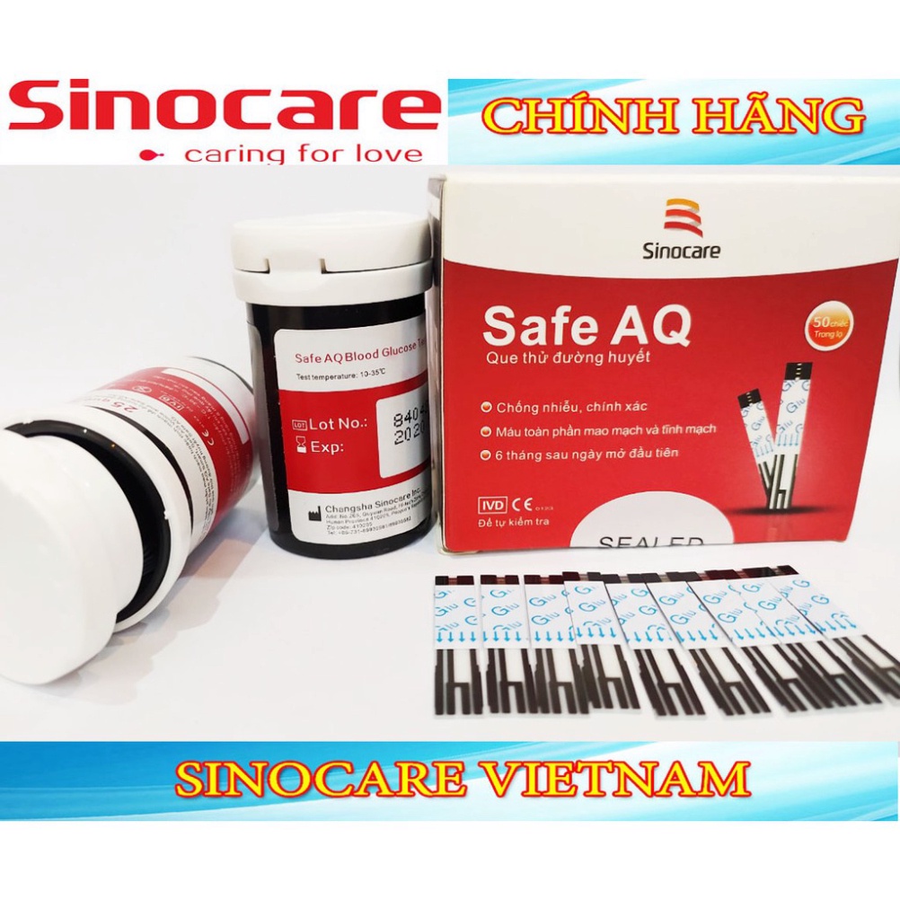 [SIEU SALE] * Que Thử Đường Huyết Safe AQ Smart Chính Hãng Sinocare Hộp 50 Que Tặng Kèm 50 Kim