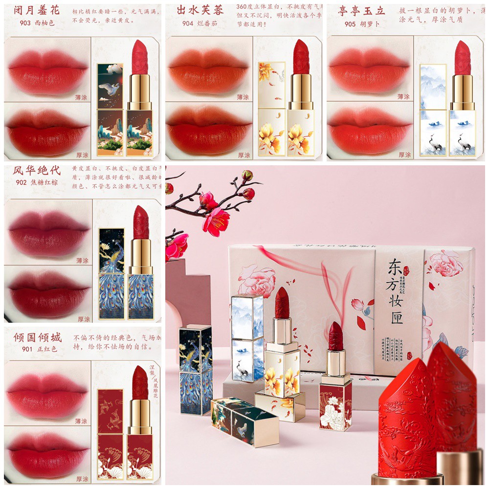 Son nội địa Trung, son lỳ DROHOO Cổ Trang Chạm Khắc 3D Set 5 cây