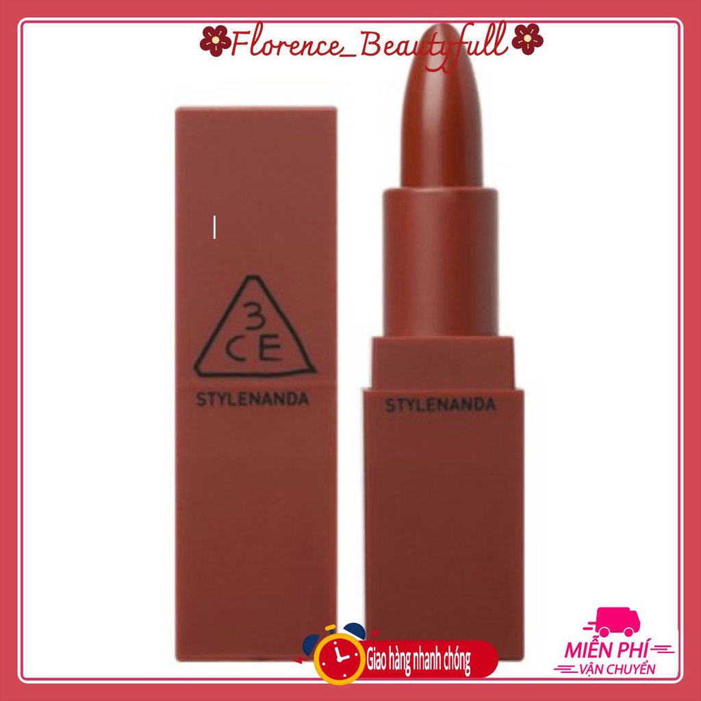 – Son 3CE 909 Smoked Rose mang tone Đỏ Gạch, màu son này không quá nổi bật như đỏ tươi hay bí ẩn như đỏ mận thông thường. Đỏ Gạch đủ sức tôn làn da và ngay cả các nàng da ngăm cũng có thể dùng được.
