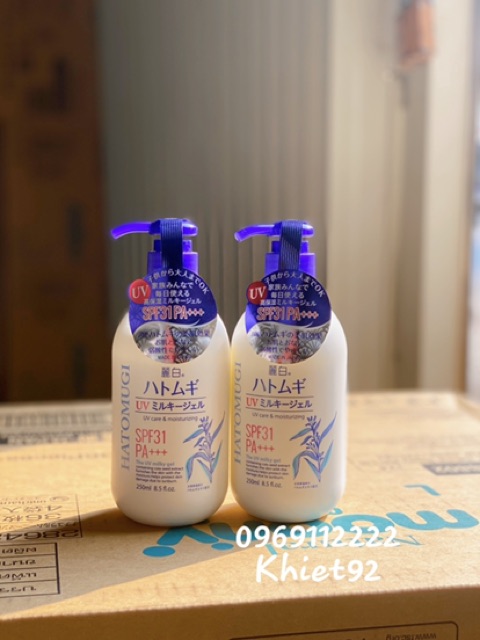 🌞🌞Kem chống nắng lại dưỡng trắng cả toàn thân BODY HATOMUGI chai 250ml.Dùng bét nhè 3 tháng mới hết.#