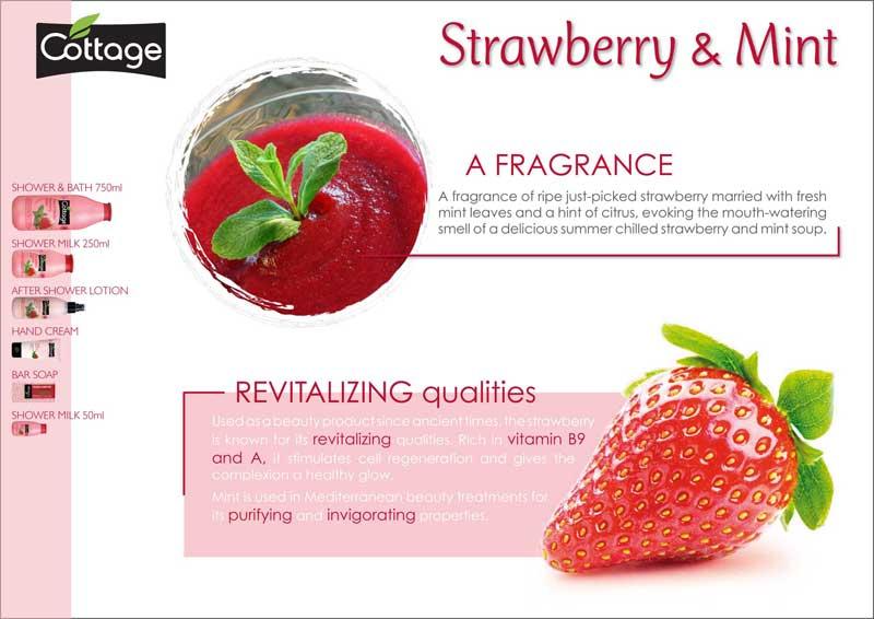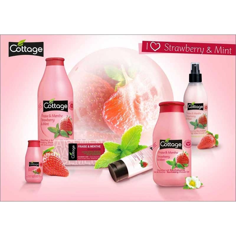 - Sữa tắm Sữa tắm COTTAGE Strawberry & Mint (hương Dâu và Bạc Hà) 750ml có mùi thơm ngọt ngào, dịu nhẹ giúp mang lại sức sống và cảm giác thư giãn dễ chịu. Đặc biệt thích hợp với trẻ con.