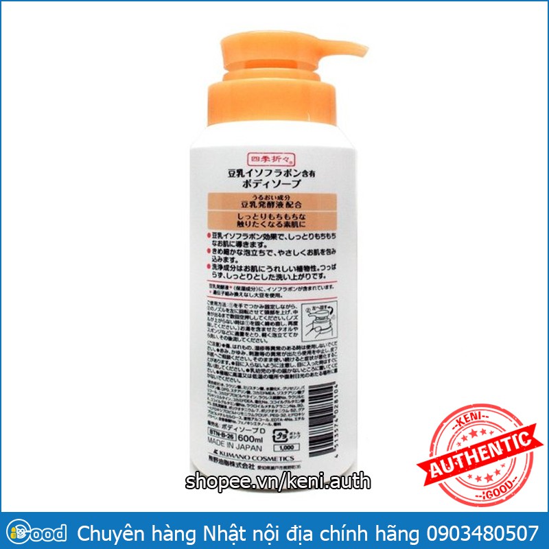 Giới thiệu Sữa tắm đậu nành Kumano Soy Milk Shikioriori Nhật Bản 600ml