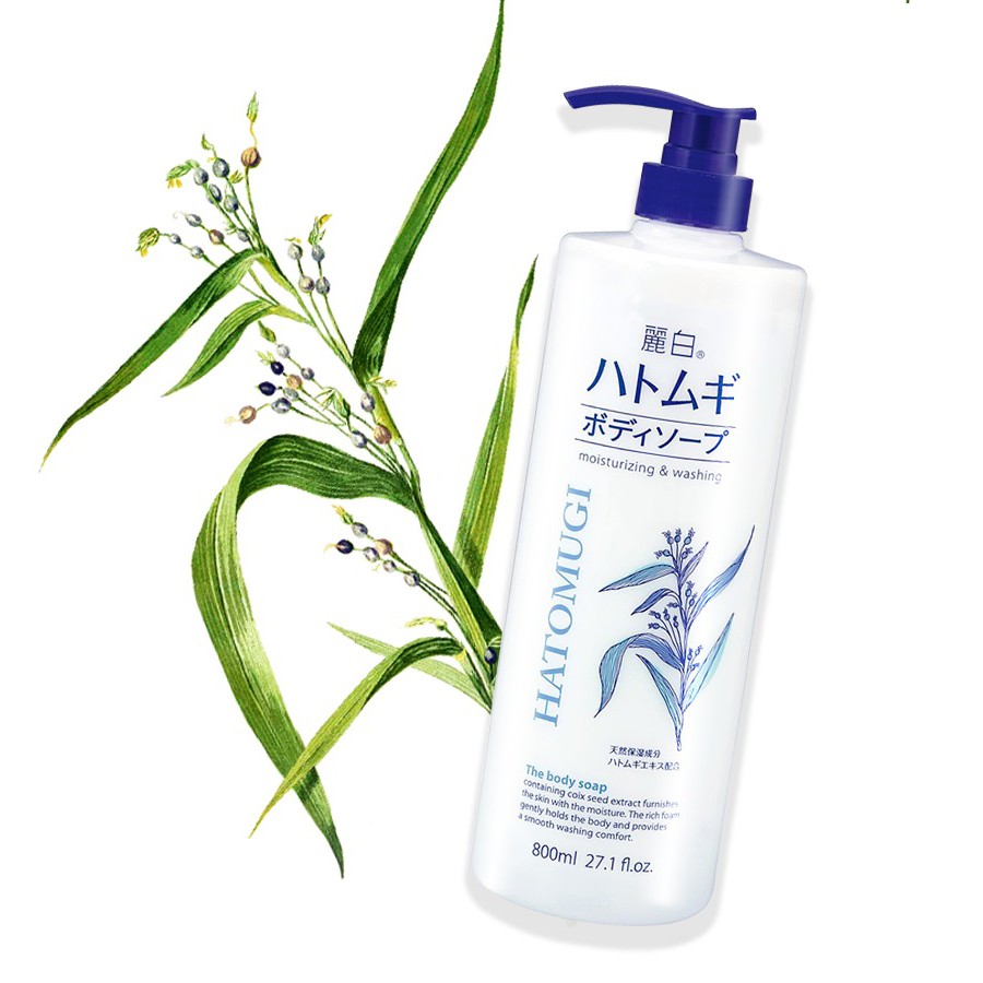 Sữa tắm dưỡng ẩm trắng da Hatomugi Moisturizing Washing 800ml chiết xuất từ hạt Coix (hạt ý dĩ) chứa nhiều axit béo và dưỡng chất vitamin E, B1, B12 giúp nuôi dưỡng làn da mịn màng, loại bỏ tế bào sừng sần sùi, dưỡng trắng da hiệu quả. Bên cạnh đó cung cấ
