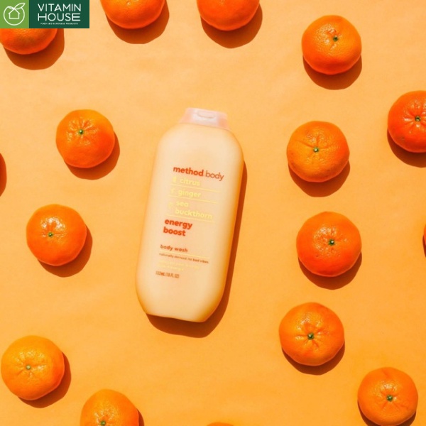 - sữa tắm trắng da method Body Wash Energy boost 532ml (màu cam): mùi cam tươi mát cùng với gừng và hắc mai biển mang đến cảm giác thư giãn cho người sử dụng và làm sạch da hiệu quả.