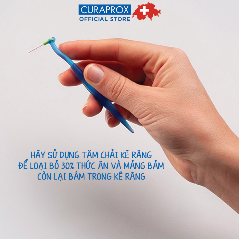Thân tăm chải kẽ có thể gắn được mọi đầu tăm của Curaprox, thật tiện lợi. Bạn có thể mang theo bất cứ nơi đâu, bất cứ khi nào cần vệ sinh răng miệng. Thao tác đơn giản, dễ dàng.