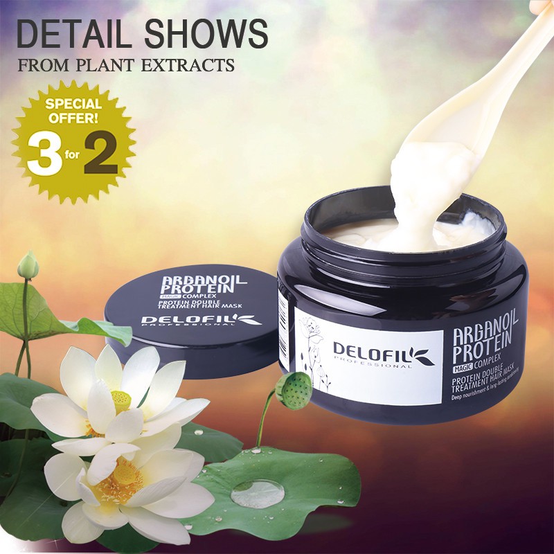 Sắc Đẹp > Chăm sóc tóc > Sản phẩm dưỡng tóc || [Tặng Mũ]Hấp phục hồi chuyên sâu delofil argan oil protein 500ml Hũ