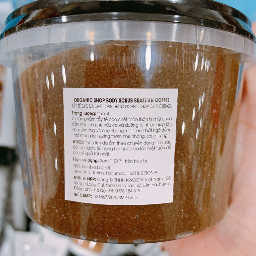 Giới thiệu Tẩy Tế Bào Chết Toàn Thân Organic Shop Organic Brazilian Coffee & Sugar Body Scrub 250ml